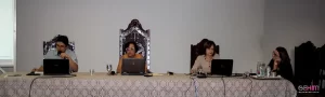 Paulo Guicheney – EMAC/UFG, Sílvia Zeferina de Faria – TECCER/UEG, Ana Guiomar Rego Souza – PPGMúsica/UFG, Magda de Miranda Clímaco – PPGMúsica/UFG, Raquel Miranda Barbosa – PPGH/UFG e lsamara do Vale – PUC/GO