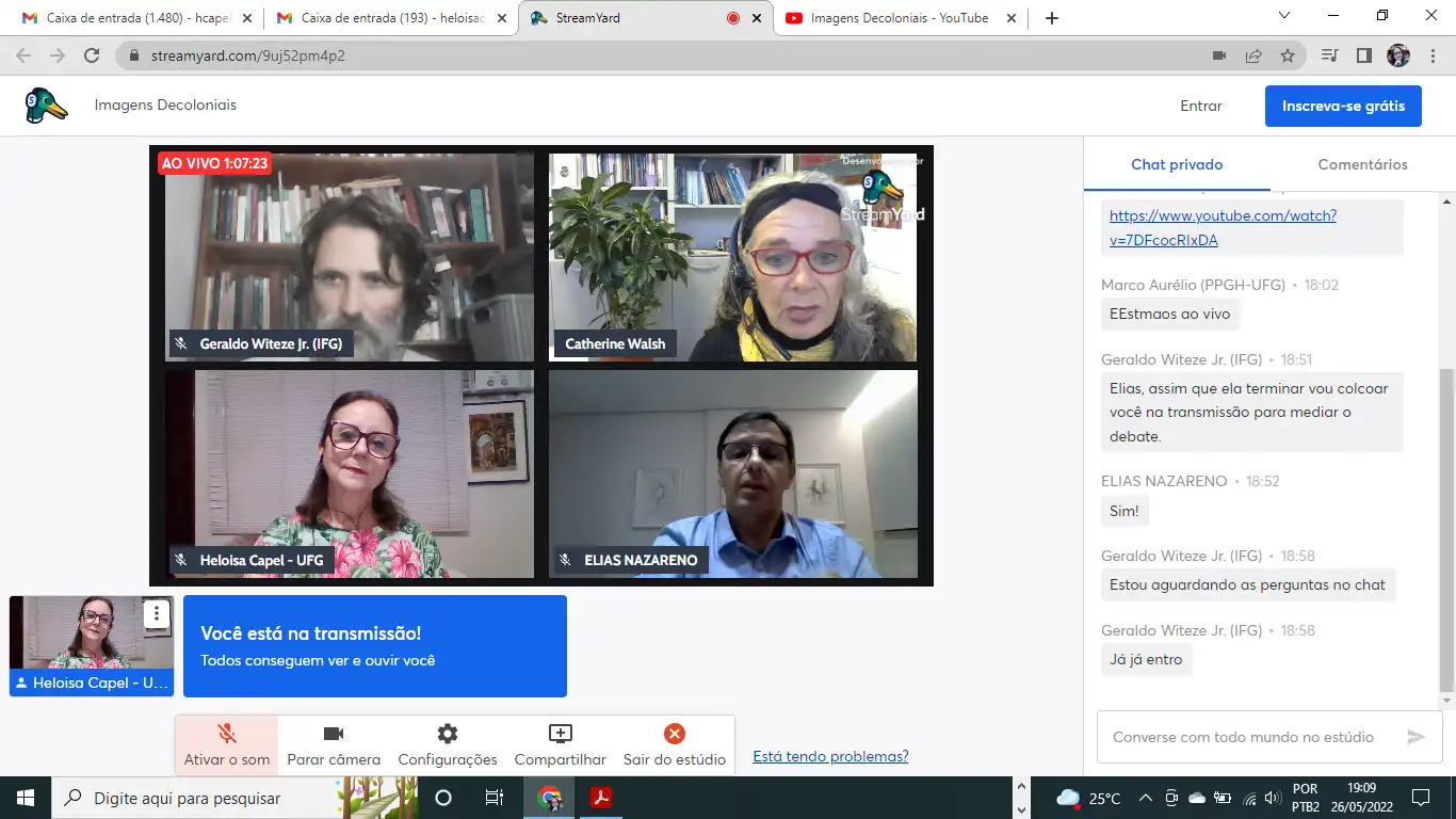 Pepita de Souza Afiune – TECCER/UEG, Matheus Moura Silva – Arte e Cultura Visual/UFG, Ronypeterson Morais Miranda – TECCER/UEG, Ligia Carvalho – Arte e Cultura Visual/UFG, Arnaldo Salustiano – TECCER/UEG, Glayce Rocha Santos Coimbra – PPGH/UFG e Ana Rita Vidica – PPGH/UFG