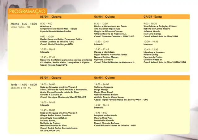 Coordenação: Ora. Rita Morais de Andrade (Arte e Cultura Visual/UFG) e Dr. Eliézer Cardoso de Oliveira (UEG)